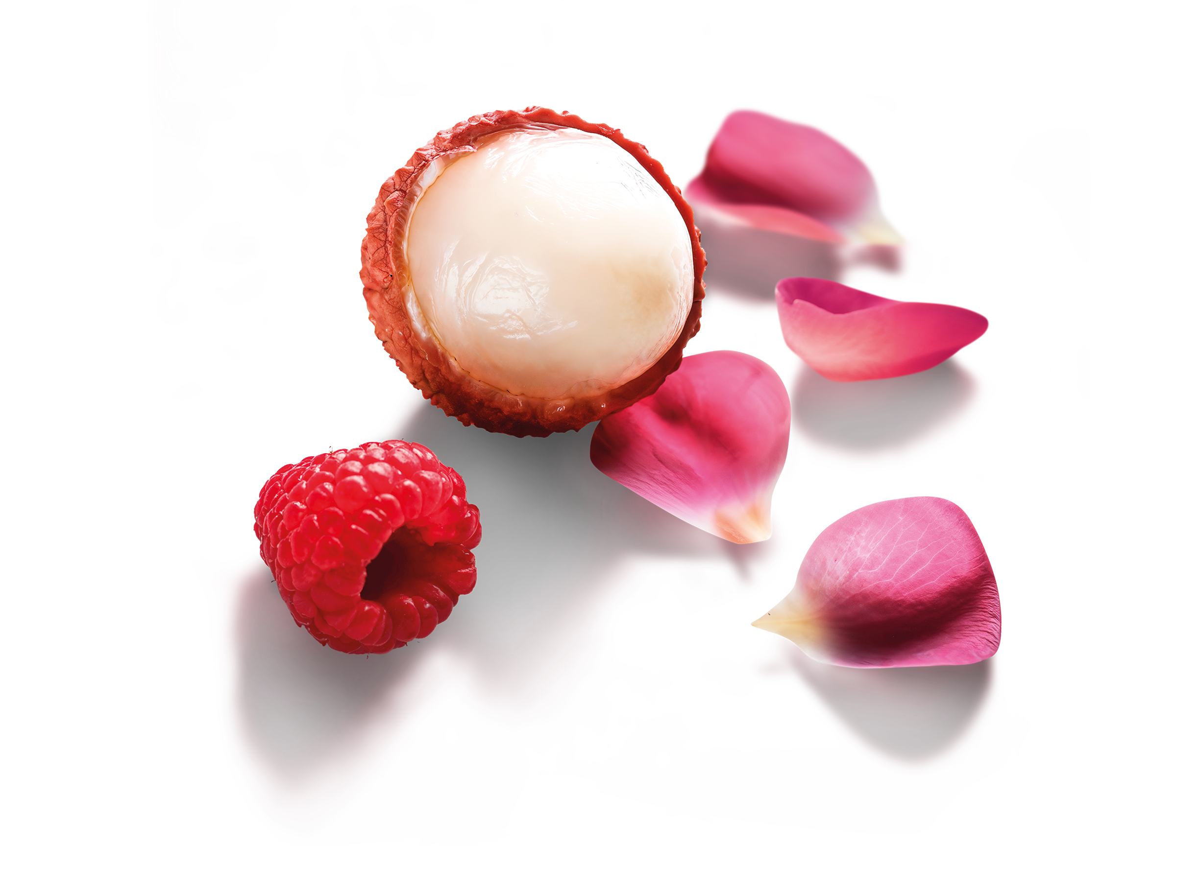 Lychee, with its delicate sweetness and floral scent, is at the heart of this association. This exotic fruit offers a subtle and refined base that invites indulgence. The raspberry, with its balance between sweetness and acidity, energizes the lychee, bringing a lively and colorful touch that enhances the whole. Finally, the rose, symbol of finesse and elegance, adds a subtle floral note. It never takes over, but envelops the lychee and raspberry in a delicate veil, transforming this combination into a tasty and harmonious experience.